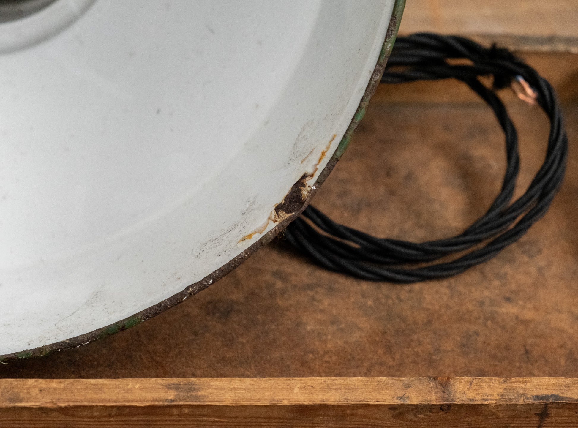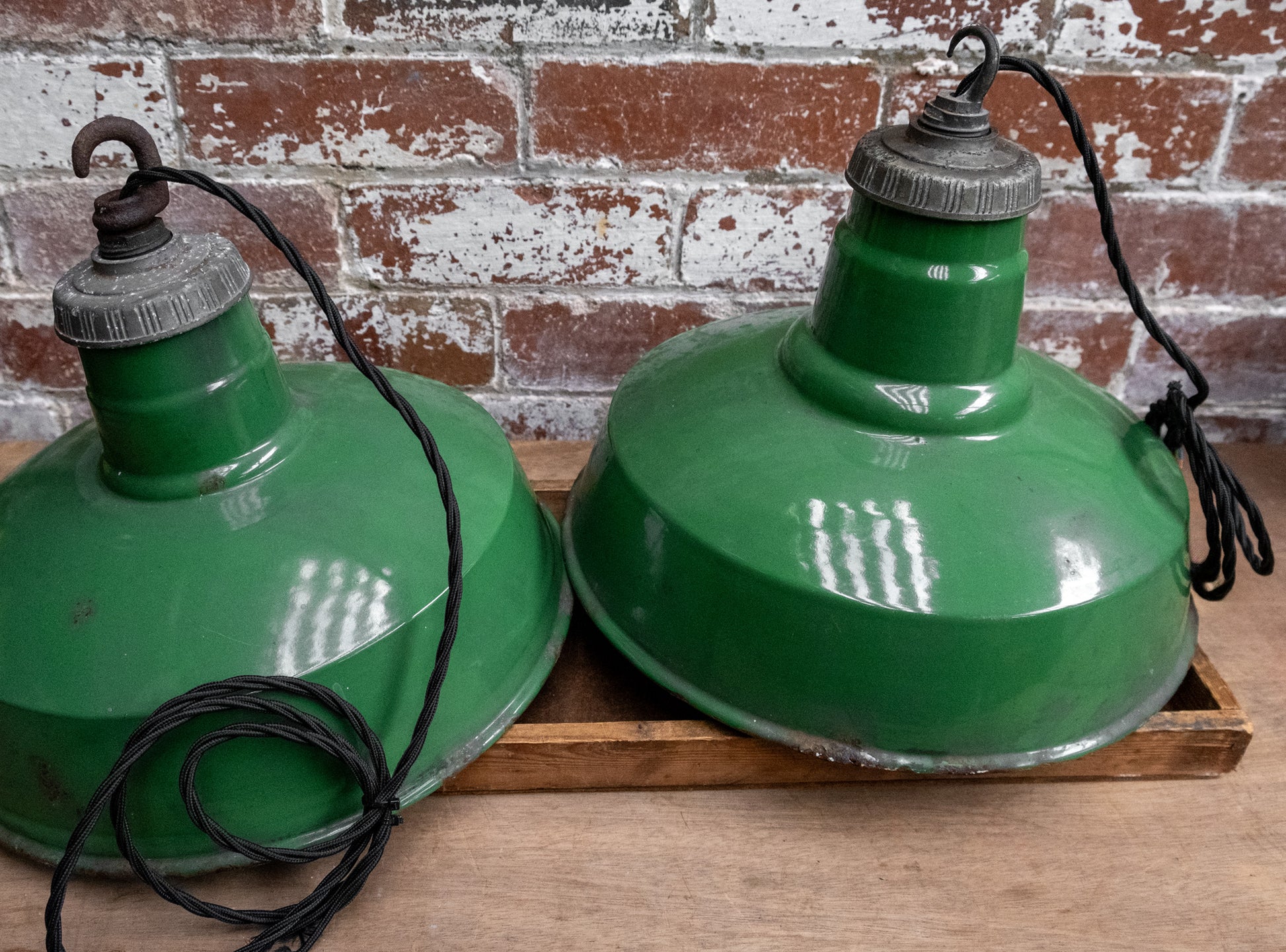 Vintage green enamel pendant lamps, ready to be wired in...