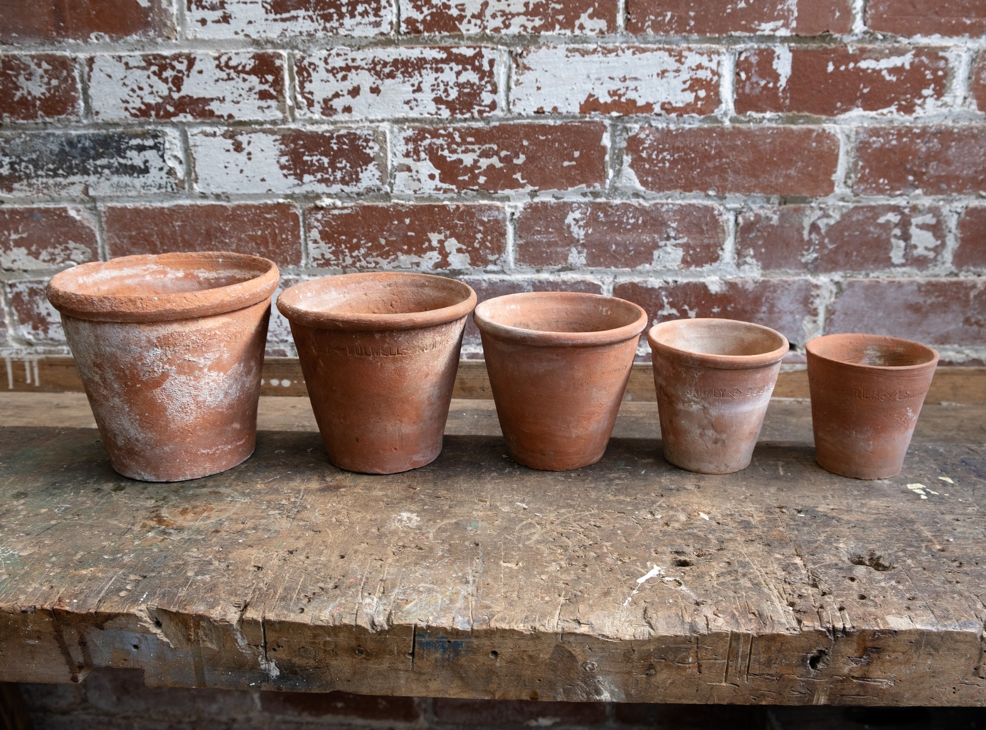 A traditional hand thrown terracotta garden pot produced by Sankey Bulwell.