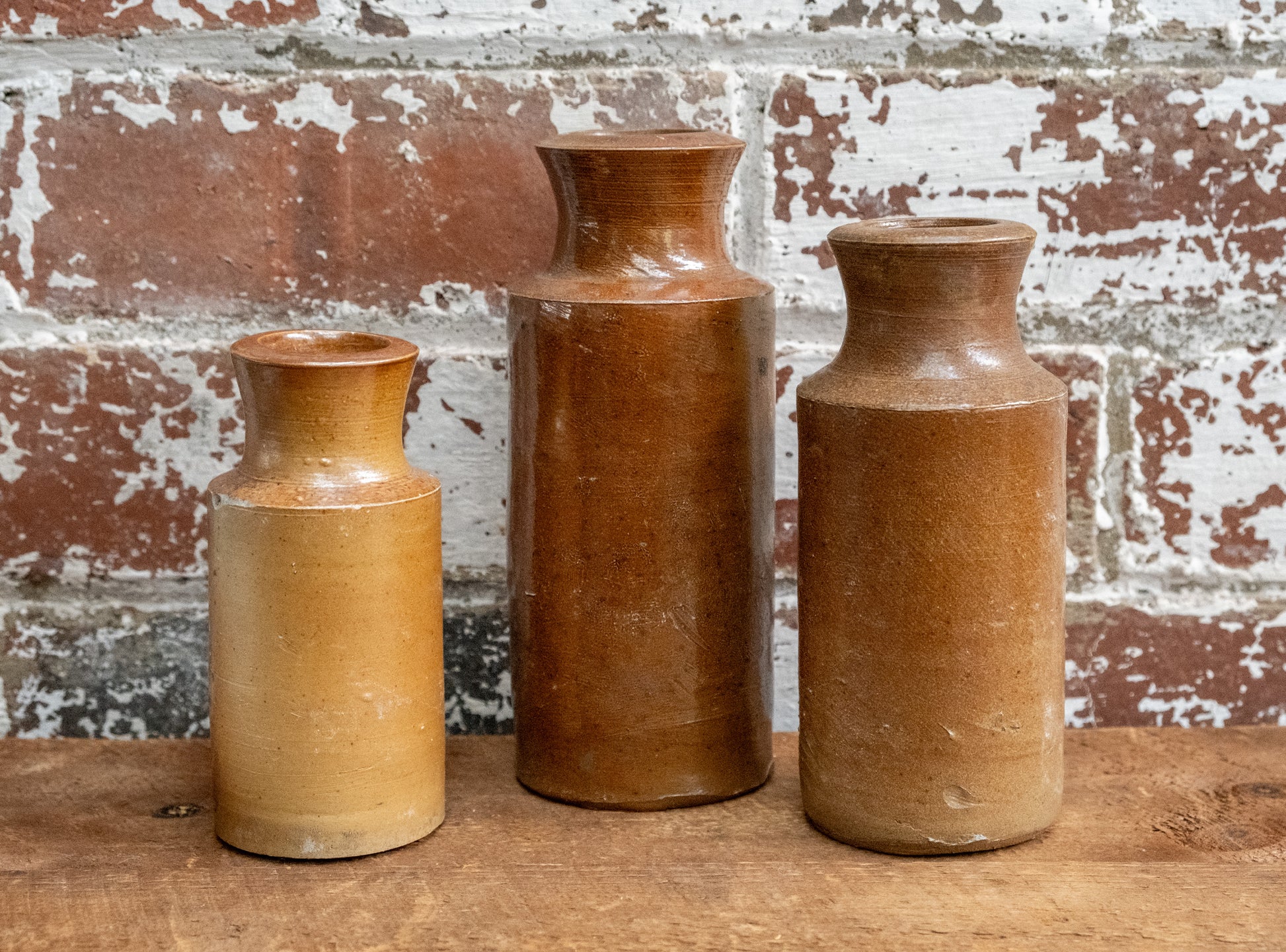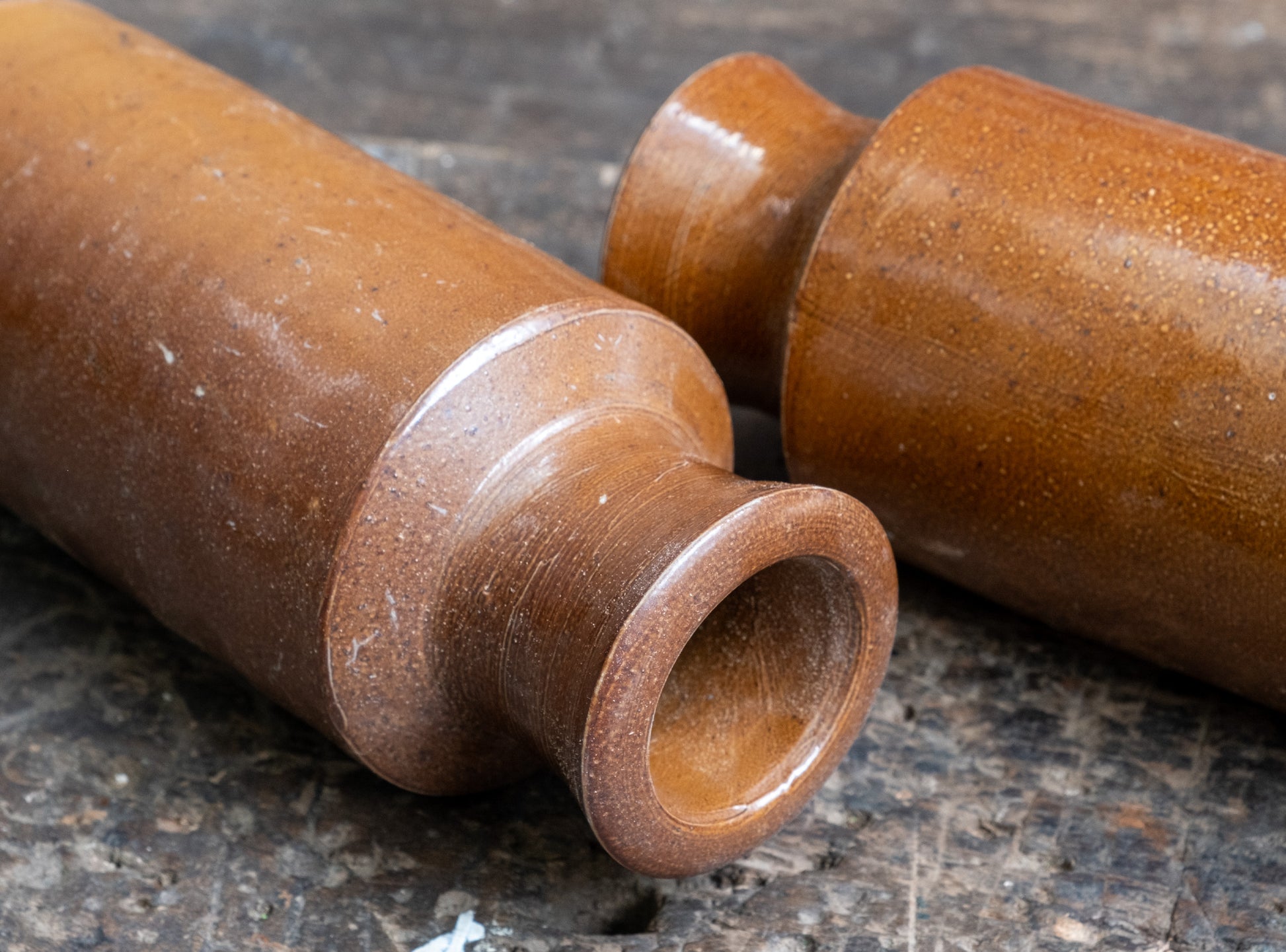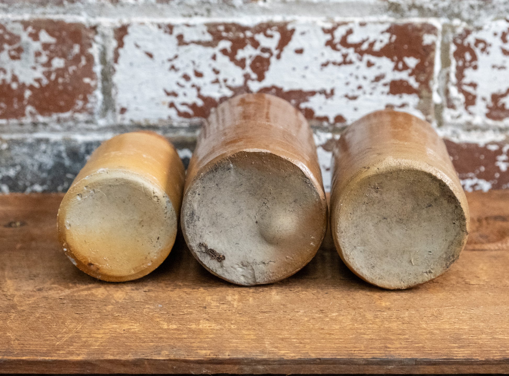 Hand made vintage ceramic blacking pots, made in England between 1880-1910.