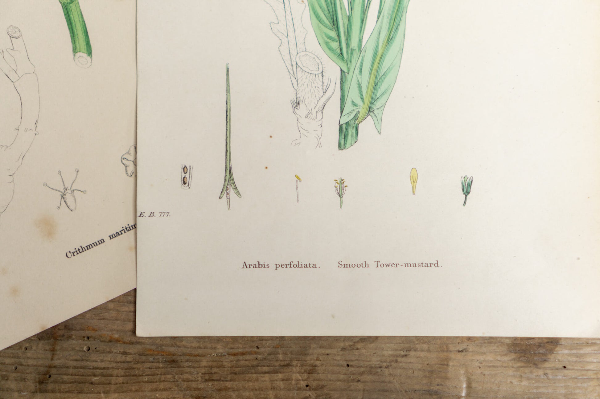 They depict detailed drawings of herbal and alpine plants such as 'Rock Samphire' and 'London Rocket'.