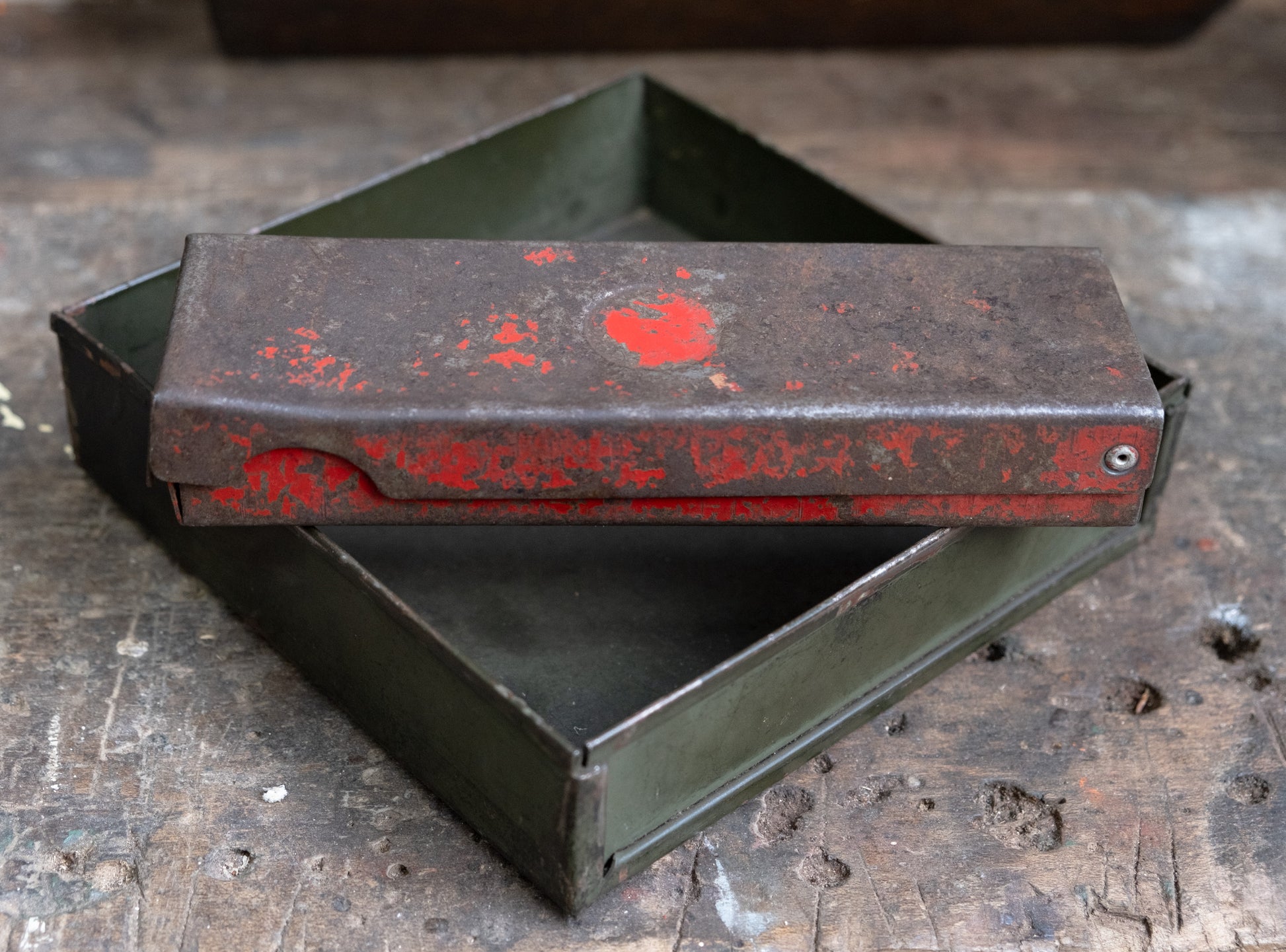 Solid heavy duty motorists set comprising 10 pieces in good vintage condition. Paint has been worn to the box, which has the original sticker to the interior.